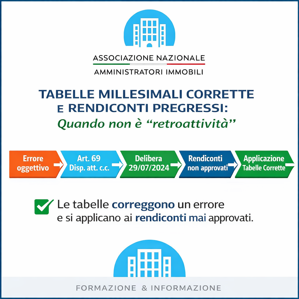 Nelle assemblee di chiusura esercizio aumentano le contestazioni quando si approvano rendiconti di gestioni pregresse e si applicano tabelle millesimali rettificate per errore. ANAI chiarisce quando non si tratta di retroattività illegittima e come ridurre il rischio di impugnazioni.